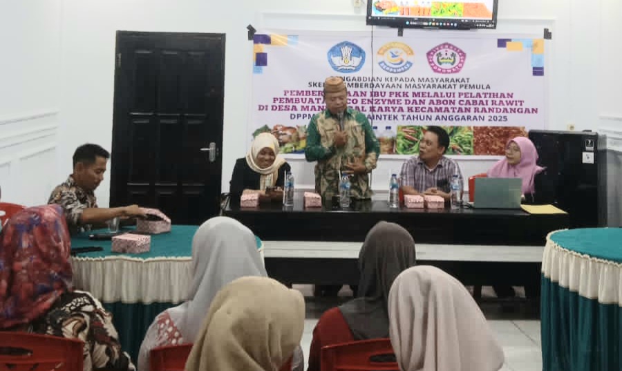 POHUWATO – Tim Pengabdian Kepada Masyarakat (PKM) Fakultas Pertanian dan Ilmu Perikanan Universitas Pohuwato melaksanakan kegiatan pemberdayaan masyarakat melalui pelatihan pembuatan Eco Enzym dan abon cabai di Desa Manunggal Karya, Kecamatan Randangan.